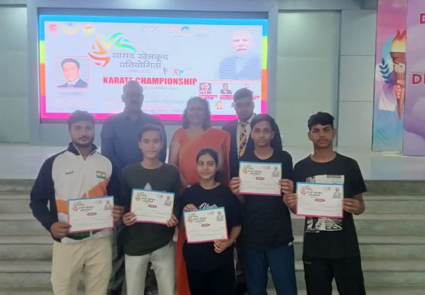 सांसद खेलकूद प्रतियोगिता के कराटे स्पर्धा में अदिति और आदर्श ने जीता स्वर्ण पदक