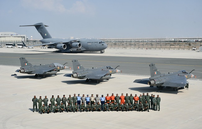विंग कमांडर आशीष मोघे ने बताया कि भारतीय वायु सेना की टुकड़ी 13 से 17 नवंबर तक होने वाले द्विवार्षिक दुबई एयर शो में भाग लेने के लिए दुबई के अल मकतूम अंतरराष्ट्रीय हवाई अड्डे पर उतरी है। वायु सेना की टुकड़ी में दो स्वदेशी प्लेटफॉर्म लड़ाकू विमान एलसीए तेजस और एएलएच ध्रुव हेलीकॉप्टर शामिल हैं। एयर शो के दौरान तेजस जमीनी और हवाई प्रदर्शन दोनों का हिस्सा होगा। सारंग हेलीकॉप्टर डिस्प्ले टीम अपने एयरोबेटिक्स कौशल का प्रदर्शन करेगी। दुबई एयर शो के 2021 संस्करण में भी भाग लेने के बाद तेजस और सारंग प्रदर्शन टीमों के लिए दुबई एयर शो में भीड़ को मंत्रमुग्ध करने का यह लगातार दूसरा अवसर है।