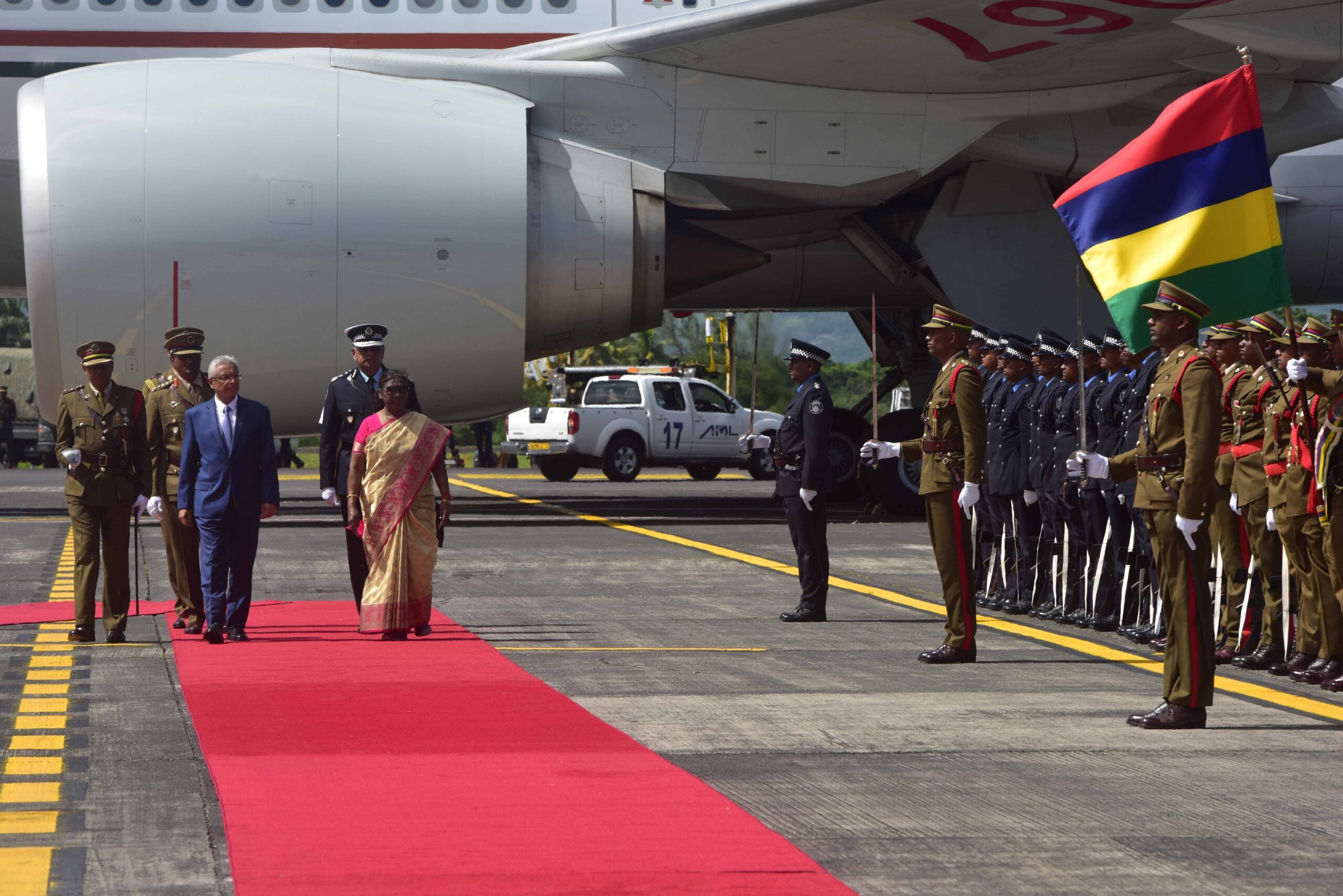 पोर्ट लुइस, 12 मार्च । राष्ट्रपति द्रौपदी मुर्मू ने मॉरीशस की अपनी पहली राजकीय यात्रा पर यहां पहुंचने पर मॉरीशस के महान सपूतों सर शिवसागर रामगुलाम और सर अनिरुद्ध जगन्नाथ को पैम्पलेमोसेस के बॉटनिकल गार्डन में श्रद्धांजलि अर्पित की। यह सचित्र जानकारी भारतीय राष्ट्रपति कार्यालय ने एक्स हैंडल पर साझा की है।