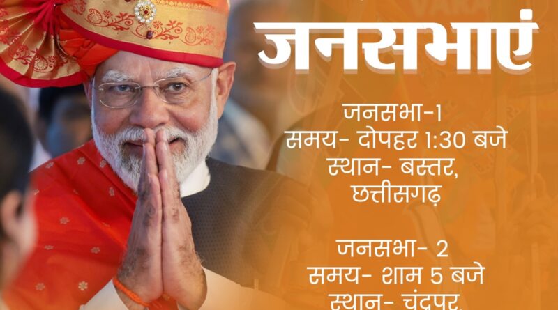 प्रधानमंत्री मोदी की आज बस्तर और महाराष्ट्र के चंद्रपुर में चुनावी जनसभा