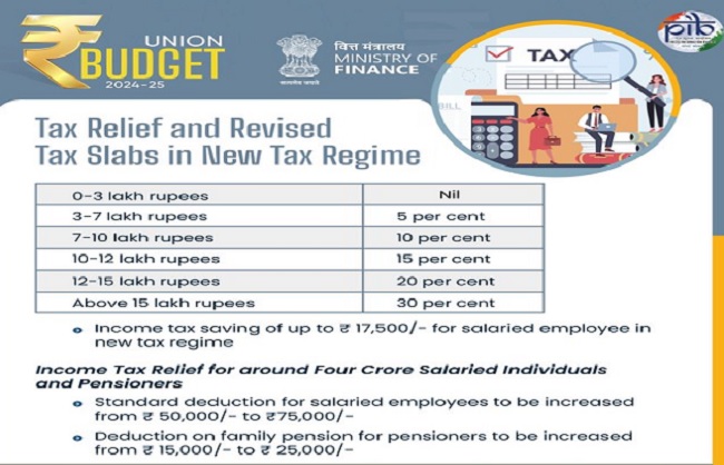 सीतारमण ने चालू वित्त वर्ष 2024-25 के बजट में वेतनभोगी कर्मचारियों के लिए मानक कटौती को 50 हजार से बढ़ाकर 75 हजार रुपये करने का प्रस्ताव किया है। इसके अलावा नई कर व्यवस्था के तहत पेंशनभोगियों के लिए पारिवारिक पेंशन पर कटौती को 15 हजार से बढ़ाकर 25 हजार रुपये करने का प्रस्ताव रखा है। इन दोनों बदलावों से टैक्सपेयर्स को 17,500 रुपये तक का फायदा मिलेगा। हालांकि, वित्त मंत्री ने पुरानी कर व्यवस्था में कोई बदलाव नहीं किया है।