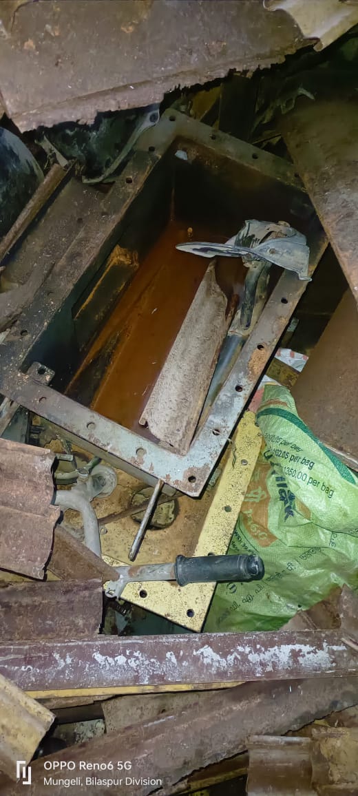 श्रीमान पुलिस अधीक्षक महोदय श्री भोजराम पटेल,अति०पुलिस अधीक्षक श्री पंकज पटेल,अति०पुलिस अधीक्षक श्री विवेक शुक्ला,अति०पुलिस अधीक्षक सुश्री नवनीत छाबड़ा के निर्देशानुसार अनुविभागीय अधिकारी पुलिस श्री एस०एस०आर० घृतलहरे के मार्गदर्शन में थाना मुंगेली क्षेत्र में चल रहे अवैध कबाडी दुकानो की लगातार निगरानी किया जा रहा है कि दिनांक 05.11.2024 मुखबीर की सूचना के आधार पर विजय निषाद पिता पुन्नी राम निषाद उम्र 30 वर्ष साकिन सुभाष वार्ड मुंगेली थाना सिटी कोतवाली मुंगेली के ग्राम कामता रेहुंटा तिराहा के घर बाड़ी में जाकर चेक करने पर एक पुराना मो०सा० किमती 10,000 रूपये, ट्रांस्फार्मर का कटे-फटे सामान, लोहे का एंगल, छड, सटर, ऑटो पार्ट्स का सामान, लोहा एवं अन्य कबाड़ी सामान कुल अनुमानित वजनीय 8-9 क्वींटल जुमला अनुमानित किमती 28,000 रूपये एवं 40 नग इस्तेमाली टायर अनुमानित किमती 3,500 रूपये कुल जुमला किमती 41,500 रूपये को गवाहों के समक्ष जप्त कर कब्जा पुलिस लिया गया। एवं धारा 106 (1) बी.एन.एस.एस के अन्तर्गत इस्तगाशा कायम कर जांच में लिया गया है।