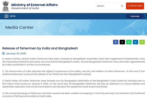 विदेश मंत्रालय ने इस बात पर जोर दिया कि भारत अपने मछुआरों की सुरक्षा, संरक्षा और कल्याण को सर्वोच्च महत्व देता है।
