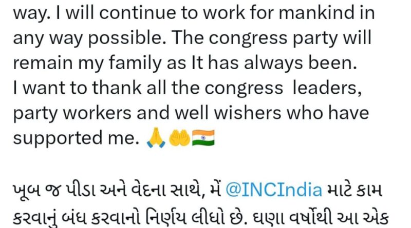 फैजल ने पोस्ट में लिखा है कि वे मानवता के लिए काम करते रहेंगे। उन्हें समर्थन देने वाले सभी नेताओं के प्रति फैजल ने आभार प्रकट किया है। फिलहाल इस पोस्ट के बाद सभी की निगाहें उनके अगले कदम पर है। हालांकि गुजरात कांग्रेस की तरफ से इस संबंध में फिलहाल कोई प्रतिक्रिया नहीं दी गई है।