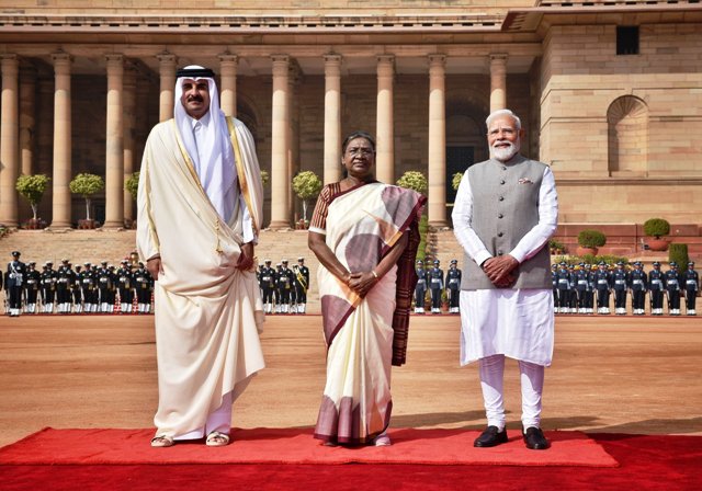 राष्ट्रपति द्रौपदी मुर्मु और प्रधानमंत्री नरेन्द्र मोदी ने राष्ट्रपति भवन के प्रांगण में कतर के अमीर शेख तमीम बिन हमद अल थानी का स्वागत किया। इसके बाद उन्हें गार्ड ऑफ ऑनर दिया गया।