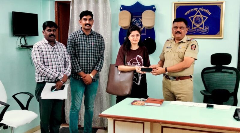 मुंबई । ठाणे के वर्तक नगर क्षेत्र में रहने वाली 25वर्षीय सुश्री पूनम मांगीलाल चौधरी, का एक लाख रुपए का आय फोन ( 15) गुम हो गया था।इसके बाद उन्होंने तत्काल 30मार्च 2025को दोपहर ढाई बजे के दरम्यान, वर्तकनगर नाका से अपने निवास स्थान पर रिक्शा से जाते समय उन्होंने अपने मोबाइल आय फोन 15 के गुम होने की ठाणे के वर्तकनगर पुलिस स्टेशन में शिकायत दर्ज कराई थी।एक लाख रुपए के आय फोन खोने की शिकायत प्राप्त होने पर तत्काल वर्तक नगर पुलिस स्टेशन के वरिष्ठ पुलिस निरीक्षक राजकुमार वाघचवरे के मार्गदर्शन में जांच दल गठित कर पुलिस उपनिरीक्षक विठ्ठल चिंतामन एवं हेड कांस्टेबल नानासाहेब विठ्ठल नागरे ने तकनीकी विश्लेषण के माध्यम से उक्त मोबाइल की कुशलतापूर्वक जांच की और एक लाख रुपए कीमत के उक्त गुम हुए आईफोन 15 मोबाइल फोन को बरामद कर वर्तक नगर के वरिष्ठ पुलिस अधिकारियों ने आज शिकायतकर्ता 25वर्षीय सुश्री पूनम चौधरी उनके सुपुर्द कर दिया है।