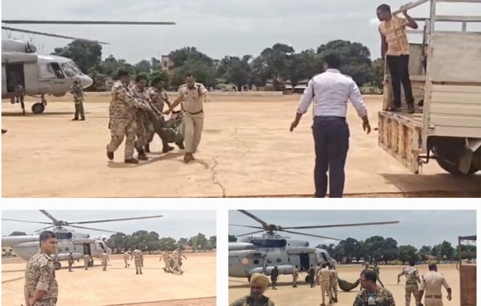 नम्बाला केशव राव उर्फ बशव राजू सहित 27 नक्सलियों के शव हेलीकॉप्टर से छत्तीसगढ़ के नारायणपुर लाए गए