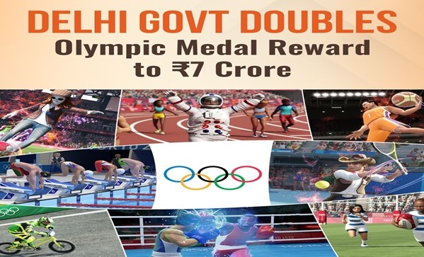 दिल्ली सरकार ओलंपिक और पैरालंपिक में स्वर्ण पदक जीतने वालों को 7 करोड़ रुपये नकद इनाम देगी