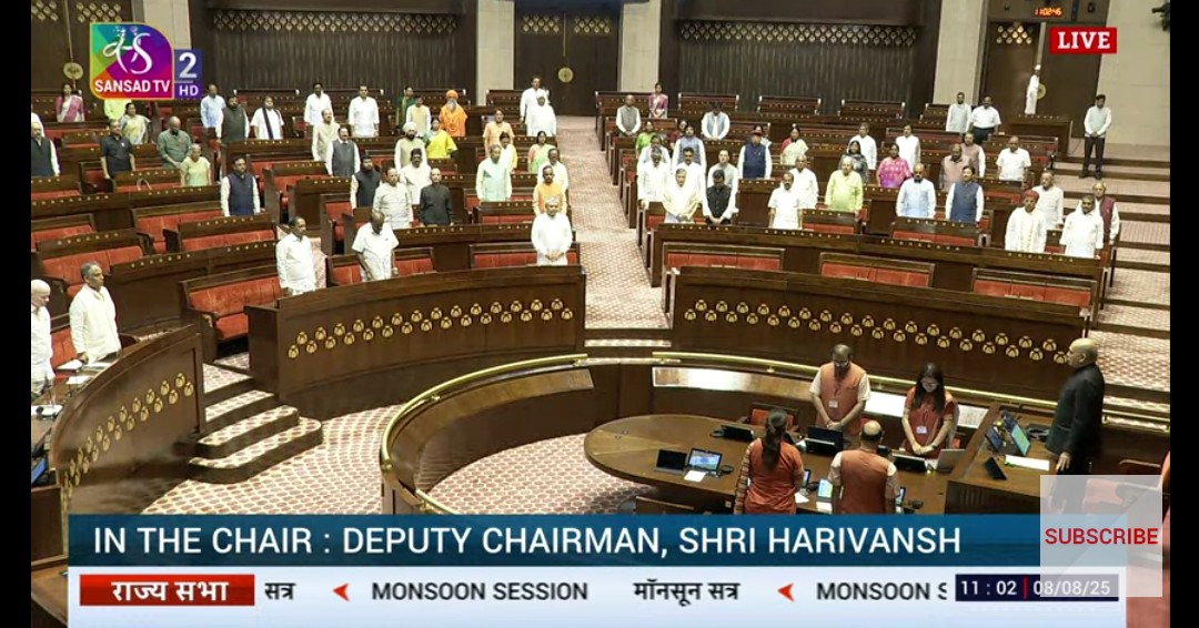 राज्य सभा ने शुक्रवार को भारत छोड़ो आंदोलन के 83वीं वर्ष गांठ के मौके पर स्वतंत्रता सेनानियों को याद किया और उनके सम्मान में दो मिनट का मौन रखा।