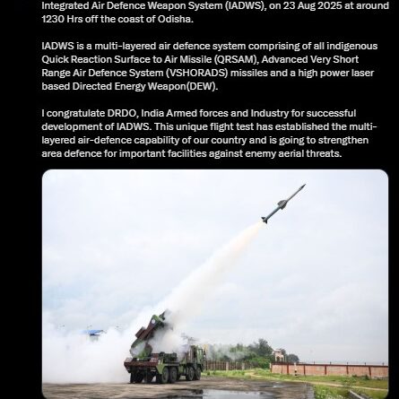 भारत की बड़ी कामयाबी, डीआरडीओ ने किया आईएडब्ल्यूएस का सफल परीक्षण