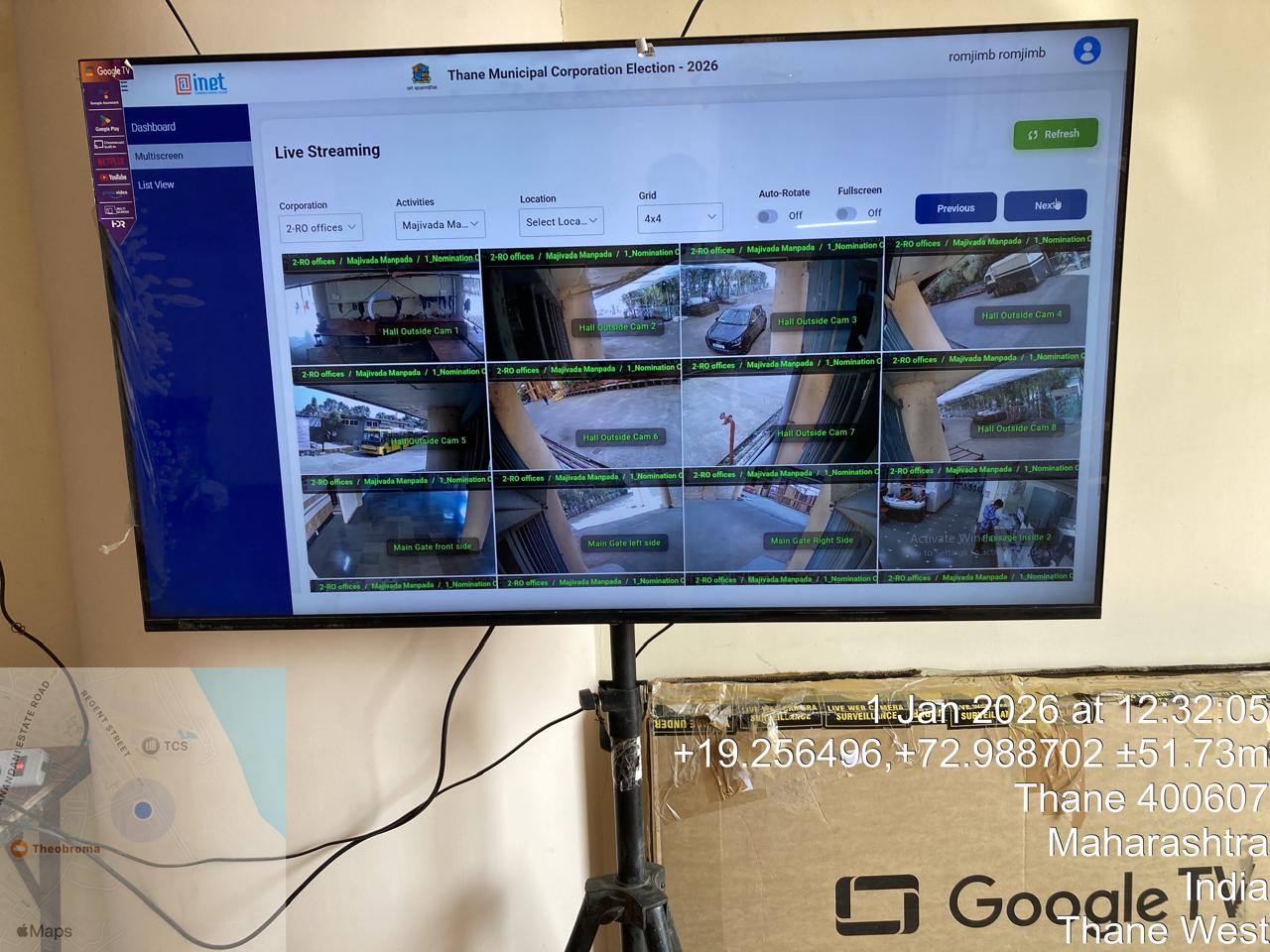 मुंबई,01 जनवरी । महानगर पालिकाओं के आगामी चुनावों को देखते हुए, ठाणे म्युनिसिपल कॉर्पोरेशन की सीमा में अब तक कुल 330 सीसीटीवी कैमरे सक्रिय किए जा चुके हैं ताकि चुनाव अधिकारी के ऑफिस, स्ट्रॉन्ग रूम, ईवीएम कमीशनिंग की जगहें, मटीरियल डिस्ट्रीब्यूशन की जगहें, सेंसिटिव और बहुत सेंसिटिव पोलिंग स्टेशन, वोट काउंटिंग की जगहें, मेन स्ट्रॉन्ग रूम, चेक पोस्ट वगैरह पर कड़ी नज़र रखी जा सके और चुनाव प्रोसेस की ट्रांसपेरेंसी और सिक्योरिटी बनी रहे, यह पक्का करने के लिए टीएमसी आयुक्त और चुनाव अधिकारी राव ने कहा कि ज़रूरत के हिसाब से और कैमरे लगाए जाएंगे।