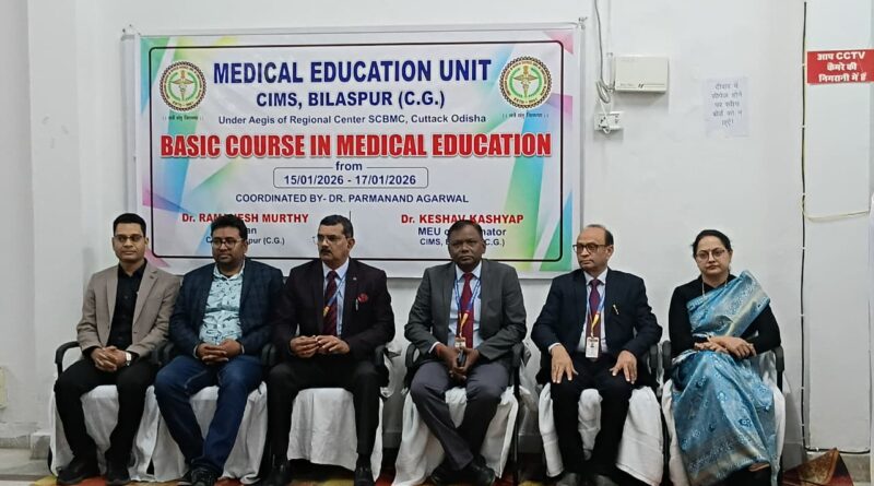 बिलासपुर, 17 जनवरी। छत्तीसगढ़ आयुर्विज्ञान संस्थान (सिम्स), बिलासपुर में अधिष्ठाता (डीन) डॉ. रमणेश मूर्ति के कुशल नेतृत्व एवं मार्गदर्शन में आयोजित तीन दिवसीय राष्ट्रीय स्तरीय कार्यशाला के माध्यम से चिकित्सा शिक्षा के क्षेत्र में नवाचारों को साझा किया जा रहा है। राष्ट्रीय आयुर्विज्ञान आयोग की ओर से आए समन्वयक डॉ. परमानंद अग्रवाल की देखरेख में आयोजित इस कार्यक्रम में तीन मेडिकल कॉलेजों के फैकल्टी सदस्य हिस्सा ले रहे हैं।