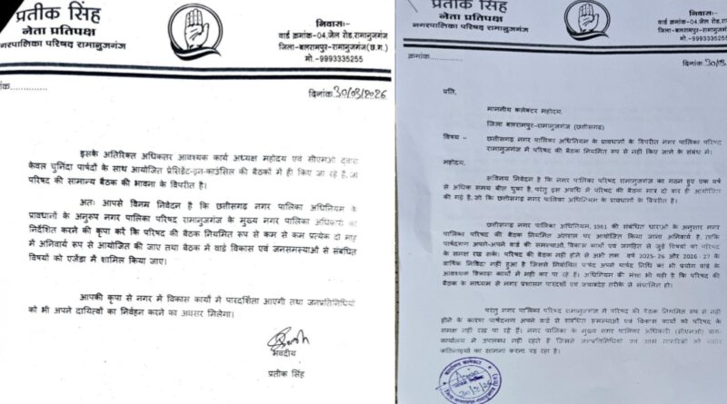 बलरामपुर : नगर पालिका परिषद रामानुजगंज में बैठकों की अनदेखी पर बवाल, नेता प्रतिपक्ष ने कलेक्टर से की हस्तक्षेप की मांग